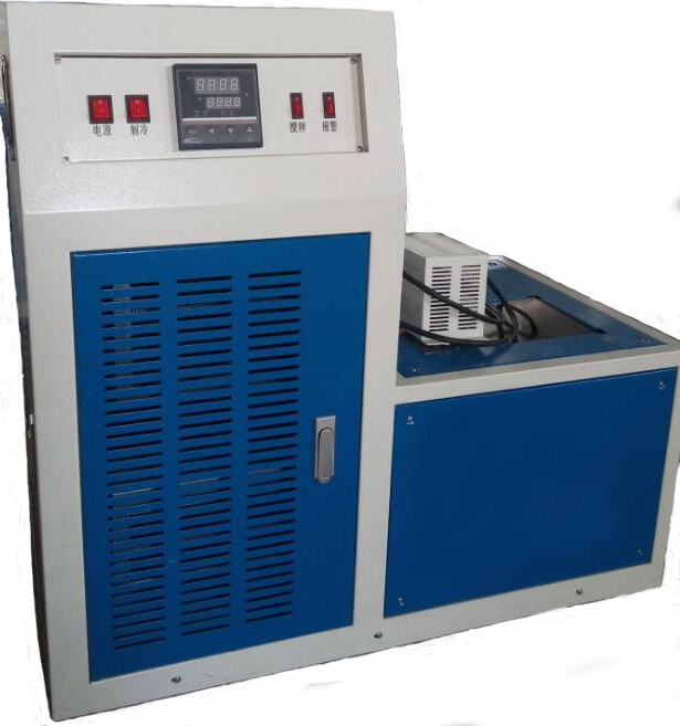 设备启动后,高温压缩机自动启动(记时器8分钟不能调整),制冷系统进入正式工作状态。制冷压缩机连续不断地工作,当接近设定温度时,电控系统自动调节制冷量与加热量,减缓降温速度,以达到恒温的目的。搅拌可使冷却槽内的冷却介质不断循环,以达到槽内的温度均匀一致。